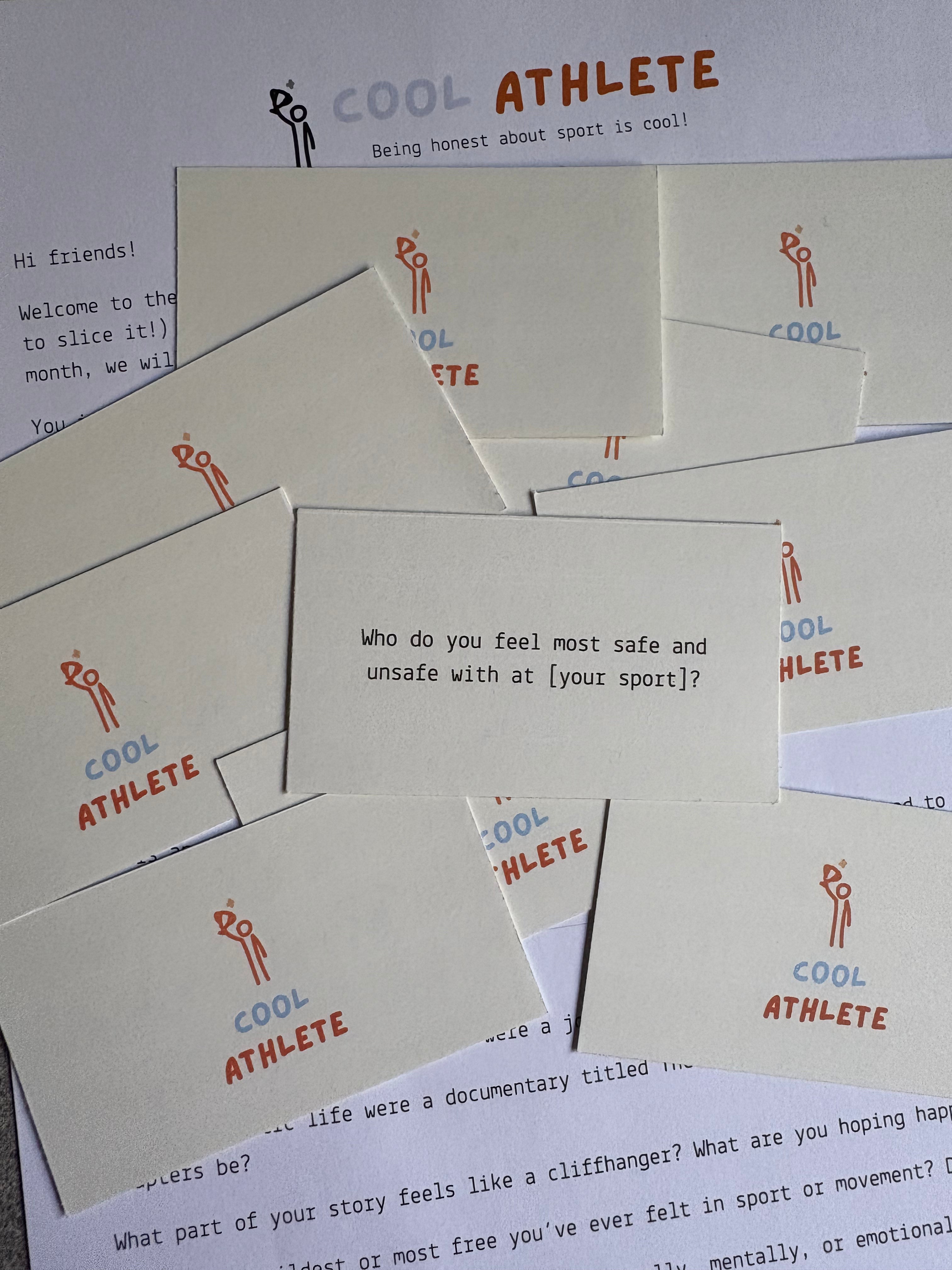 The Cool Athlete Mail Club delivers a monthly envelope of reflection prompts, creative exercises, and stories - designed to help you learn more about yourself and your experience in sport.